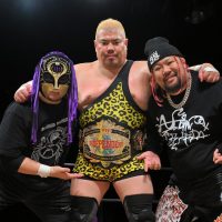 後藤が出てくると、SOSはドロップキックの編隊飛行で迎撃するも、巨漢の後藤は倒れず耐えて2人をダブルショルダータックルで吹っ飛ばす。さらに後藤が豪快なボディスラムで叩きつけて秀旺にタッチ。