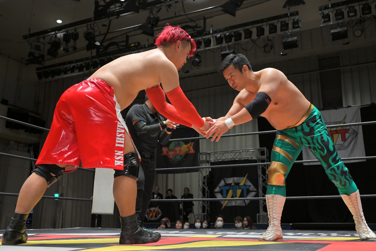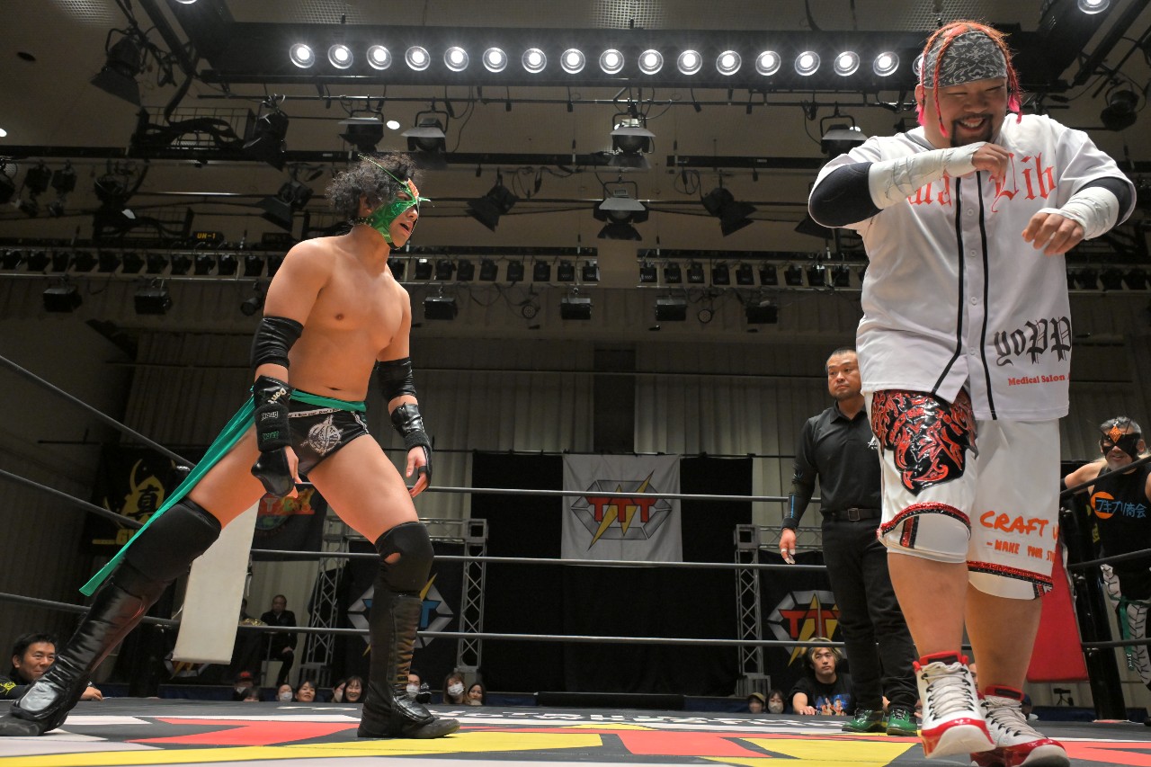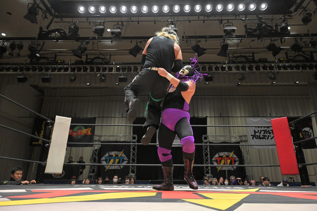 ガッツ「また正月明けで皆さんお金なくて迷惑だと思いますが、またTTTに付き合って後楽園ホールに来ていただけたらなと思いますので、皆さん応援よろしくお願いします!いつもの締めやろ?いつもの締め!TTTにはアントニオ猪木さんの『1!2!3!ダーッ!』みたいのがあるんですよ。みなさんと一緒にやりたいので、是非ご起立お願いします。俺が『シングル!ダブル!』って言ったら『トリプルT!』で締めますんで。皆さんお付き合いお願いします。行くぞーッ!シングル!ダブル!トリプルT!ありがとうございましたッ!」