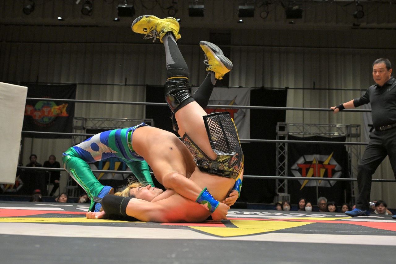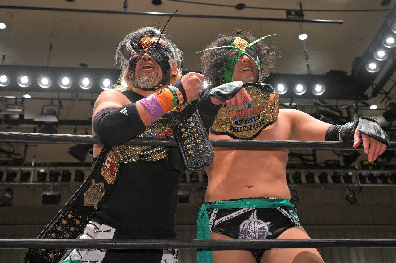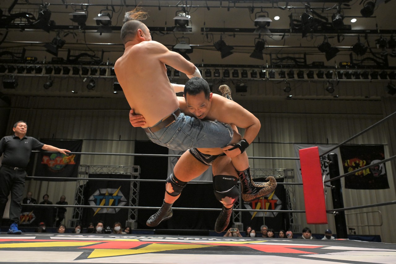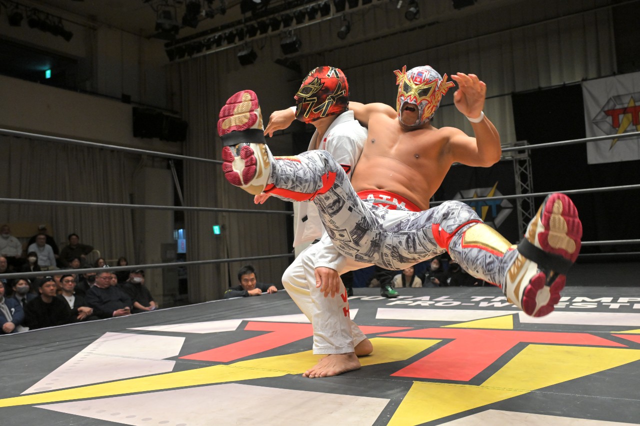 勝負を託されたミステリーが藤田にチョークスラムを狙うが、藤田がアームドラッグで切り返し、ロープに足をかけながらのスクールボーイで3カウント。混戦を制した綾斗&藤田が2度目の防衛に成功した。