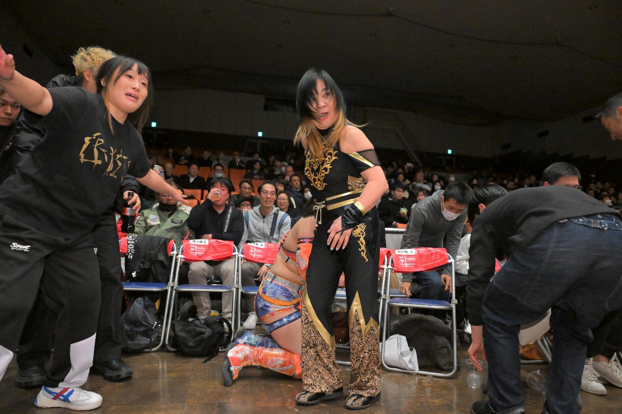 この結末に納得が行かず突っかかってきたナナミに薮下が払腰を見舞い、リングを完全に支配したCRYSISが勝鬨をあげた。