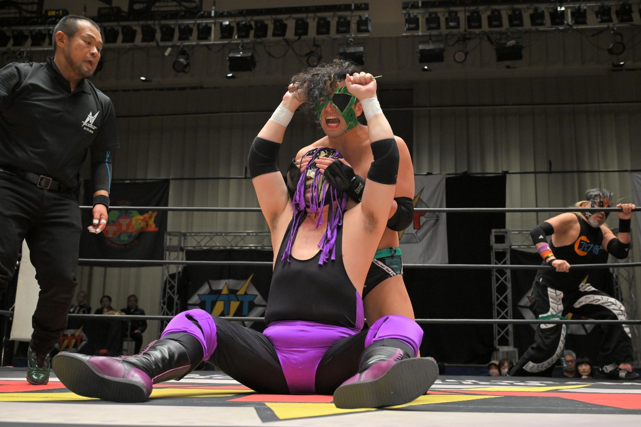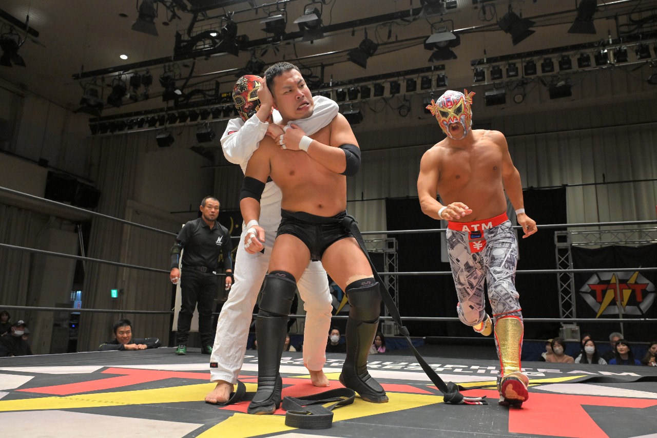 塚本が「終わりだ!」と逆エビ固めに捕らえると、佐野&阿部がATMを助けようと塚本の身体を引っ張るが、これが逆エビ固めの反りを強める形となりATMが必要以上の大ダメージを負う。