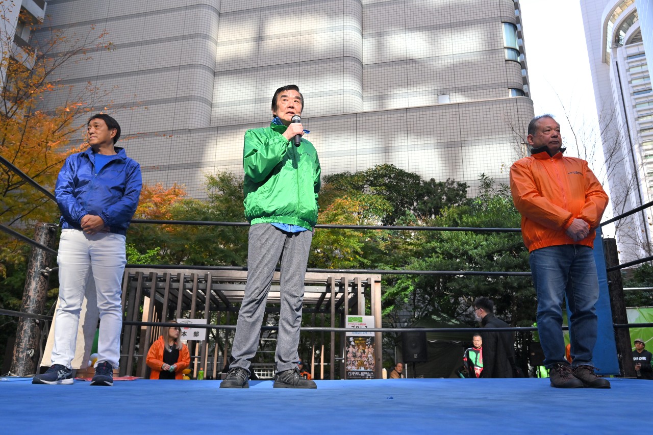 イベント開始にさきがけ、文京ガーデンテナント会の杉田明治副会長、巣鴨大鳥神社商店街の中村安次会長、末広通り商店会の石川国由会長が登壇。杉田副会長の開会宣言からイベントがスタート。