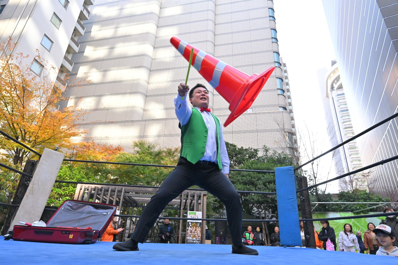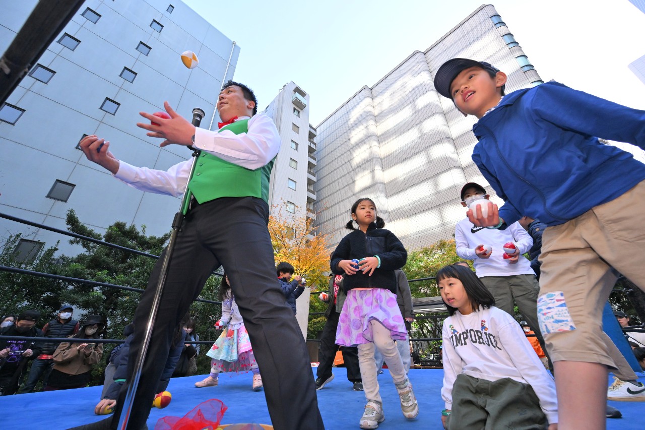 トリを務めたのは、お手玉教室でも子どもたちから大人気だった“日本一多忙な大道芸人”ストレート松浦さん。年間ステージ数は400を超え、1日に1回は必ずパフォーマンスを見せているという松浦さんのステージは圧巻。