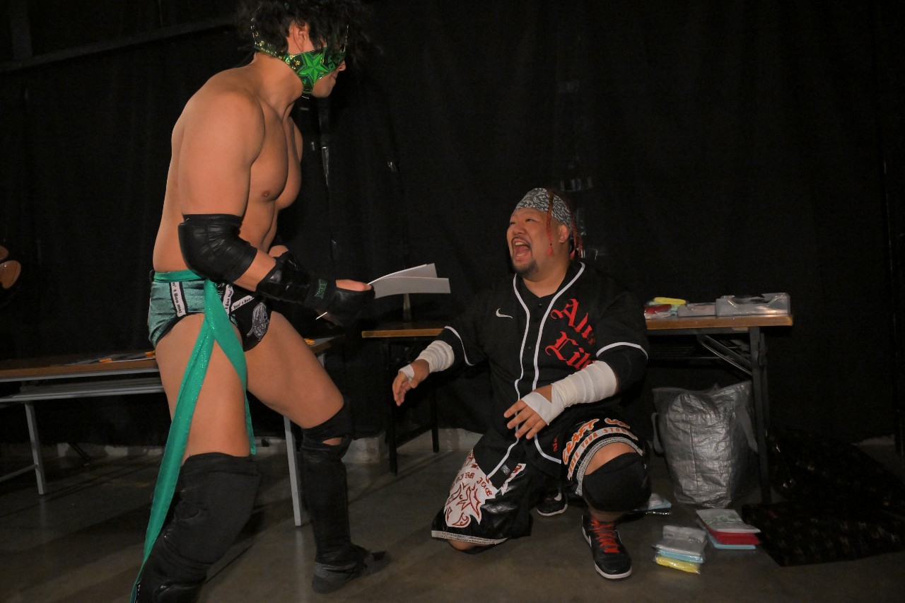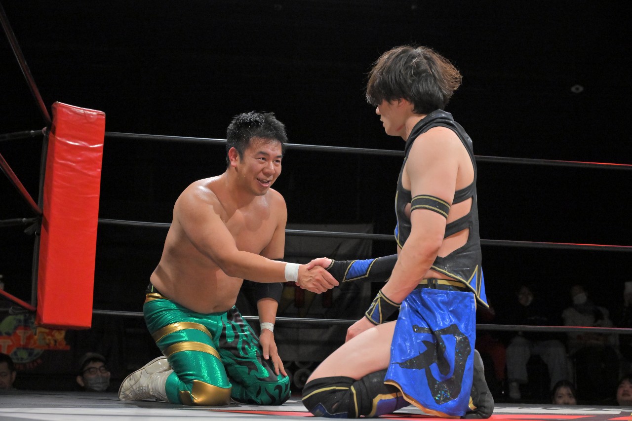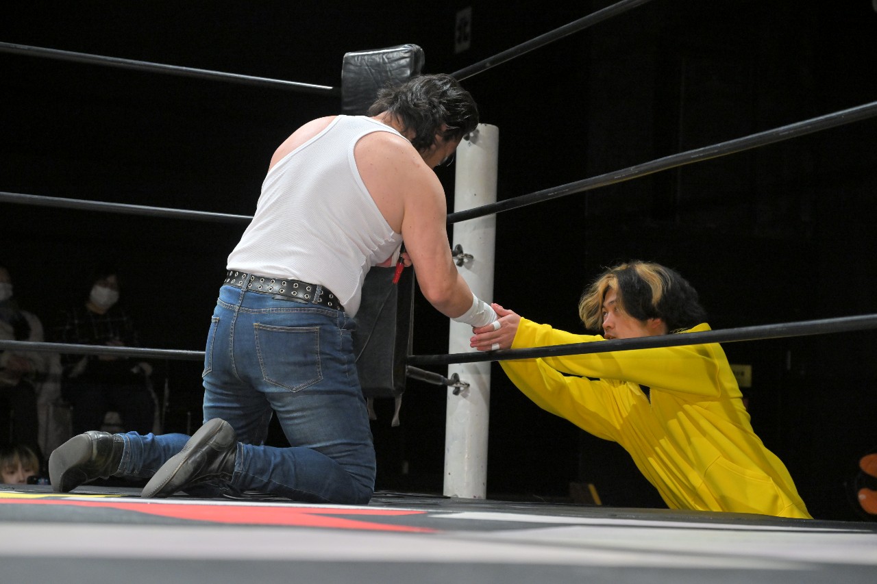 急遽試合が始まると大家が手4つを求めていくが、秀旺は無視してさっさとリングを降りる。大家が嘆く中、瀧澤がそっと寄り添って大家と握手。大家はこの日のメインイベントでインディー統一無差別級王座戴冠を果たして無視されない存在感を得ることを誓った。