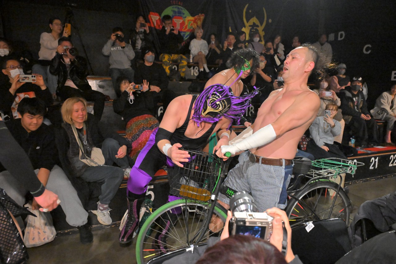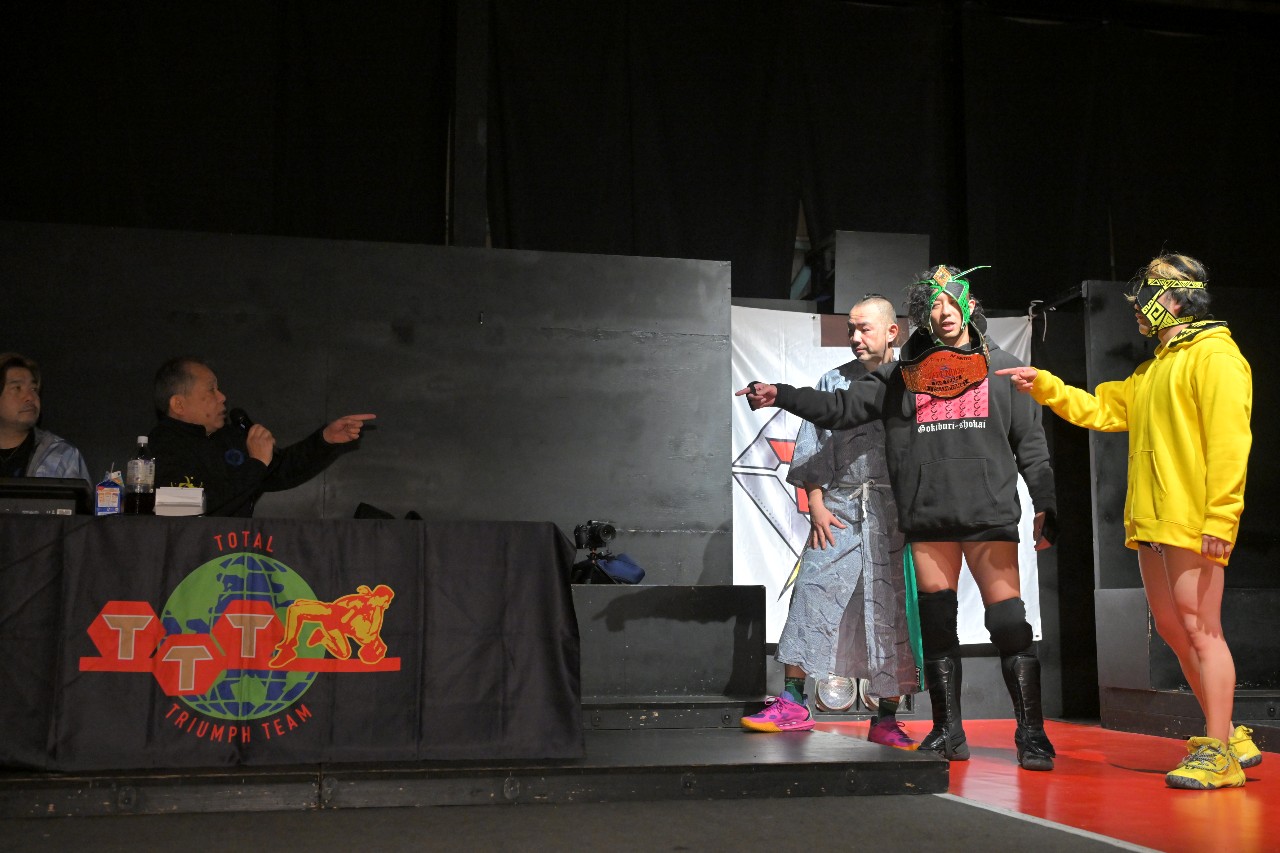いつも全試合のセコンドに付いて紙テープの回収等を行っていた一般人・瀧田大介さんがダイスケとしてプロレスラーとして復帰してしまったため、今大会からTTTでは紙テープの投げ入れが禁止に。