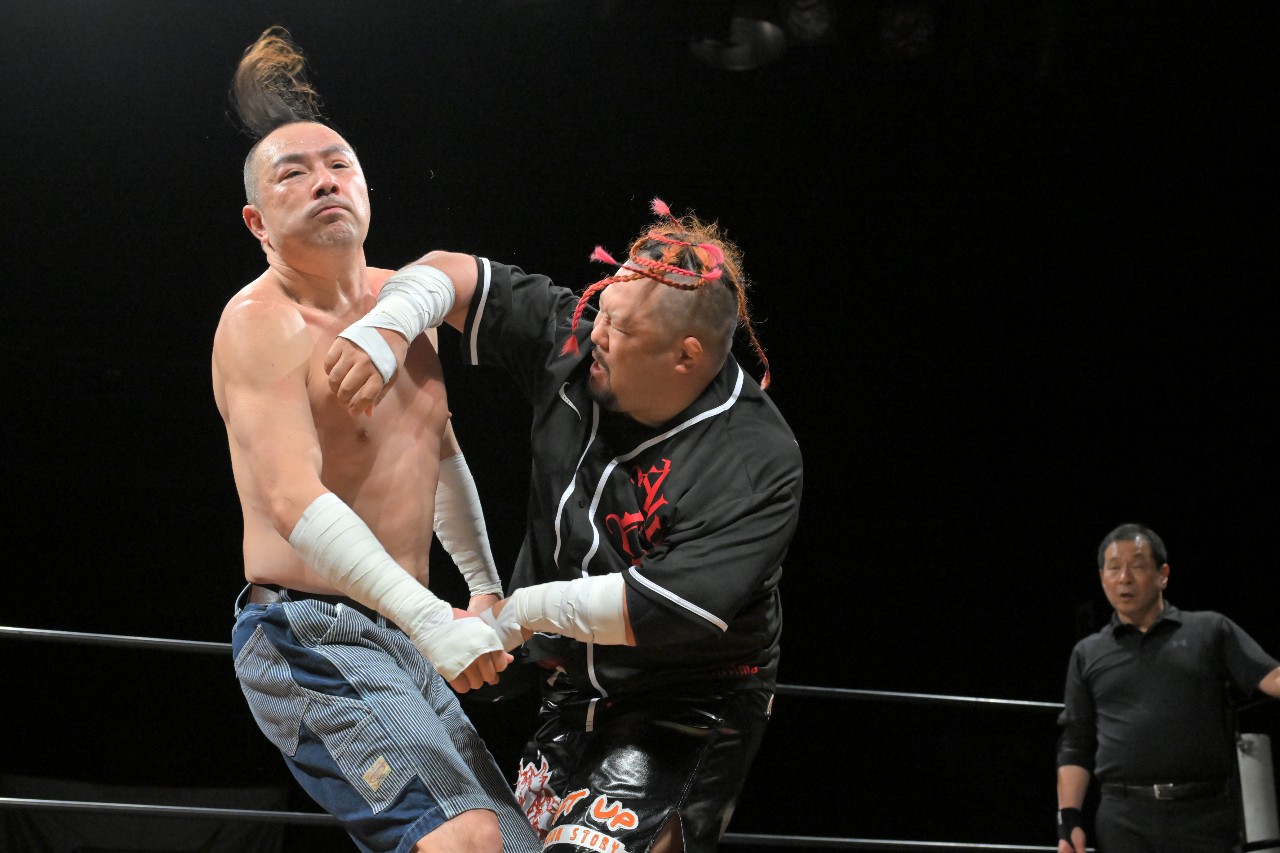 両者は20年来の付き合いだが、意外にもシングルの対戦は少なく戦績は1勝1敗。今回が6年ぶりのシングル戦であり、互いに団体の長としてプライドをかけての闘いとなった。
