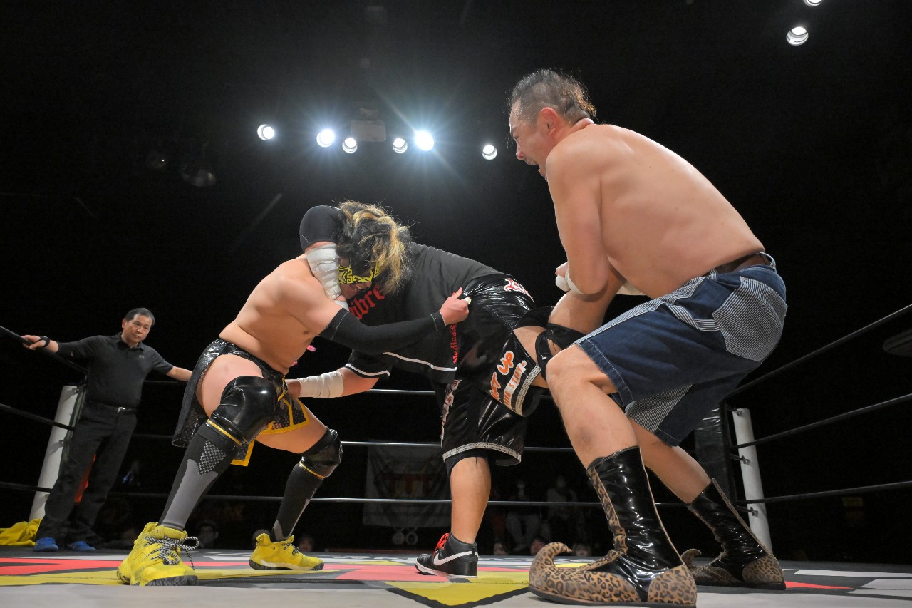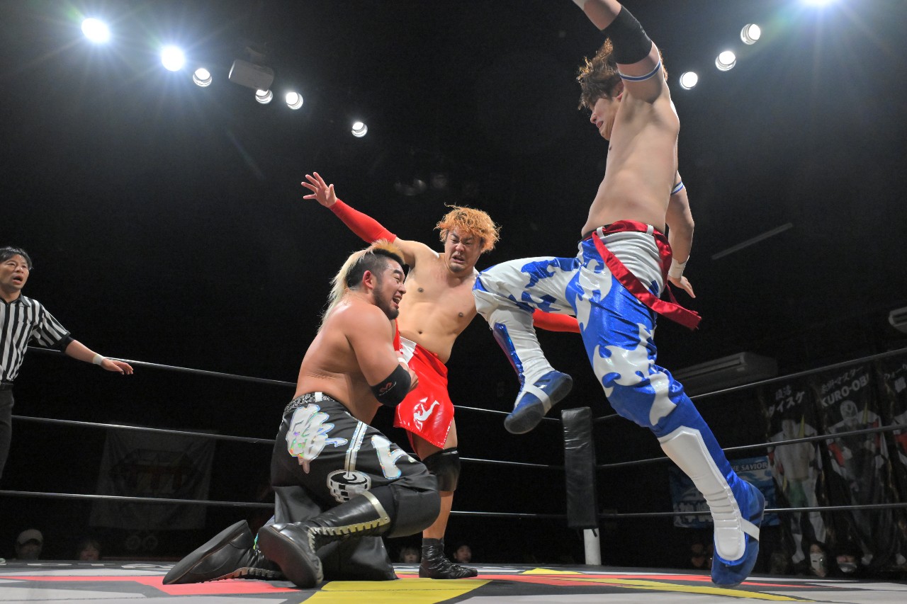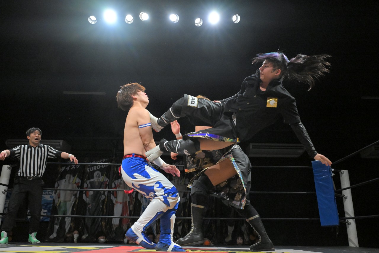 【挑戦者組/黒帯軍団】バナナ千賀(フリー)/塚本拓海(BASARA)/○KURO-OBI